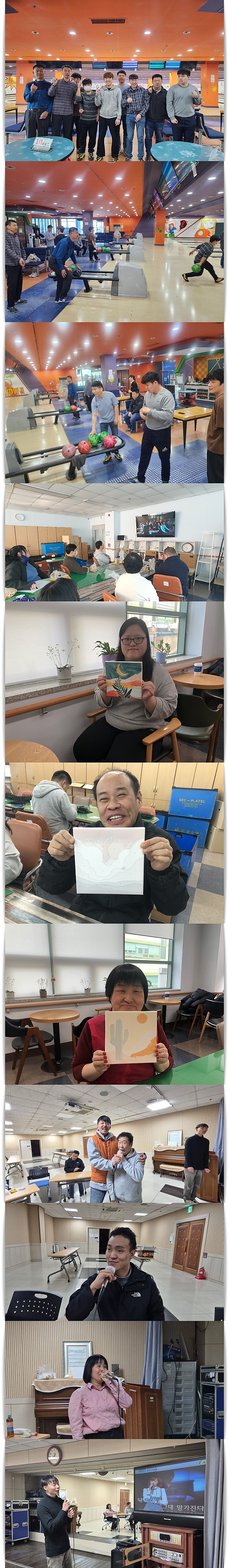 3월 이용인동아리활동 페이지 정보 작성자 관리자 작성일25-04-09 09:06 조회1,795회 댓글0건 이전글 다음글 목록 본문 이번 동아리활동은 볼링, 공예, 영화관람, 노래연습을 진행하였으며 이용인이 주최가 되어 활동할 수 있도록 지원하고 있습니다. 이전글 다음글 목록