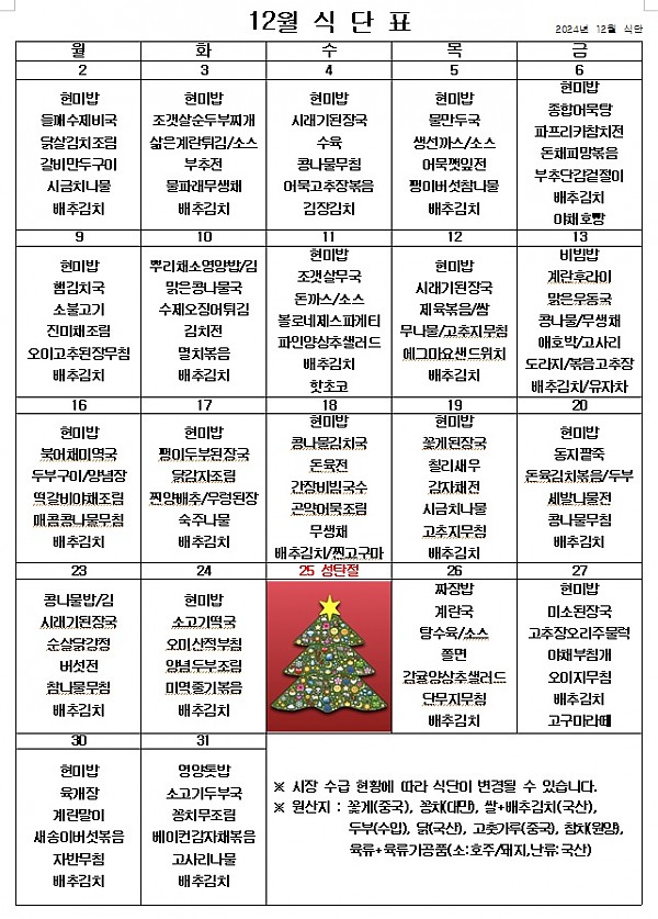 2024년 12월 식단표 ^^