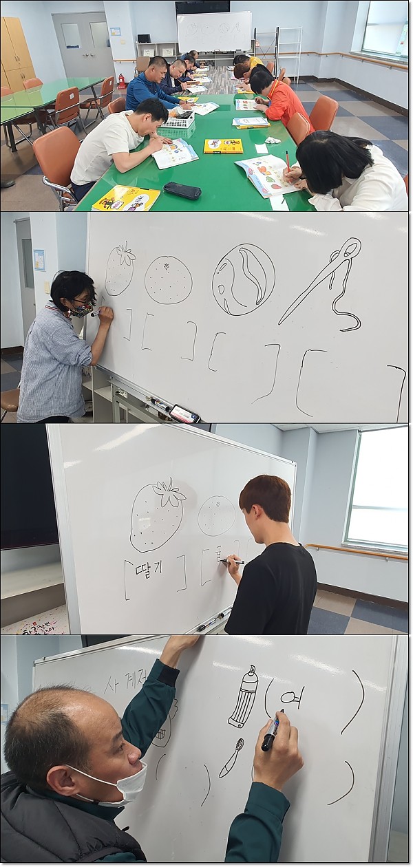 5월 기초학습 프로그램(기초반) 페이지 정보 작성자 관리자 작성일24-06-07 16:54 조회3,785회 댓글0건 이전글 다음글 목록 본문 이번 학습 내용은 그림을 보면서 읽고 쓰기를 진행하였습니다. 단순 글자를 읽는 것보다 그림을 보고 읽고 쓰는 것이 효과적이였습니다. 이전글 다음글 목록