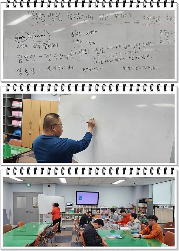 4월 속담 중 '가는말이 고와야 오는말이 곱다' 속담을 이해하며 서로 자신이 가장 듣고 싶은 말이 무엇인지 생각하고 쓰고 말해보는 시간을 가졌습니다.