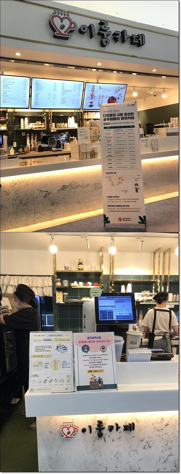 이룸카페 시청점 환경의 날 이벤트 페이지 정보 작성자 관리자 작성일23-07-06 09:43 조회4,296회 댓글0건 이전글 다음글 목록 본문 다회용컵 사용 활성화 공유텀블러 참여 카페로 환경의 날 이벤트를 진행하였습니다. 이전글 다음글 목록