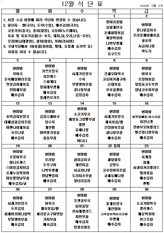 날씨가 추워졌지만 12월에도 맛있게 먹고 힘 냅시다! ^^