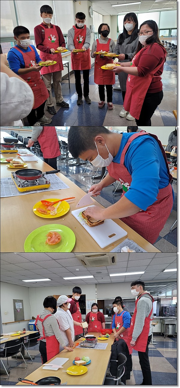 요리 프로그램 페이지 정보 작성자 관리자 작성일22-03-03 16:14 조회4,814회 댓글0건 이전글 다음글 목록 본문 이번 시간에는 샌드위치를 만들어 보았습니다. 요리도 즐겁고 맛도 좋은 시간이 되었습니다. 이전글 다음글 목록