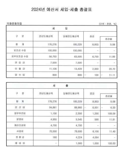 2024 각화문화의집 세입 . 세출 예산서 공고