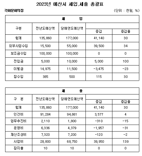 2023 각화문화의집 세입 . 세출 예산서 공고